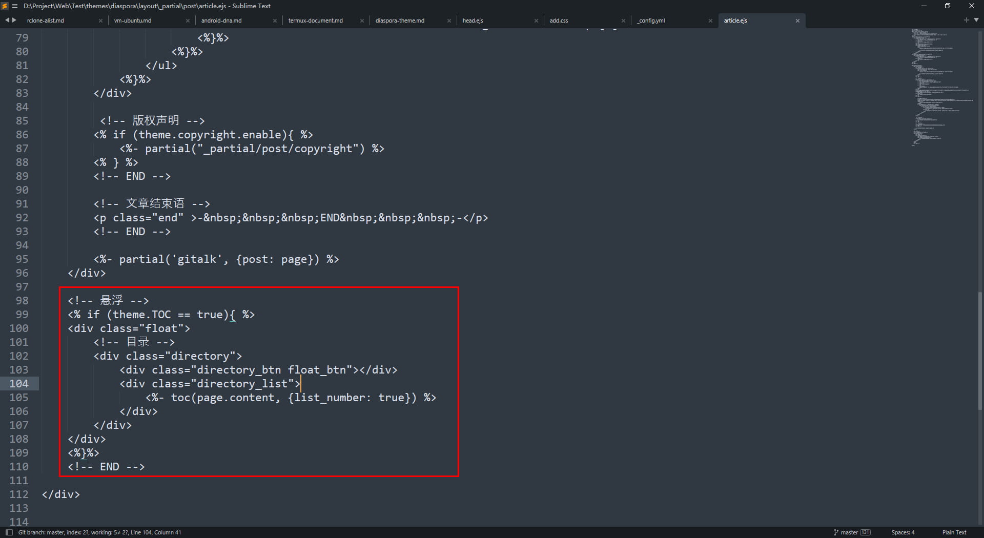 }Themeroot/layout/_partial/post/article.ejs,把图上的代码,修改成下列代码1